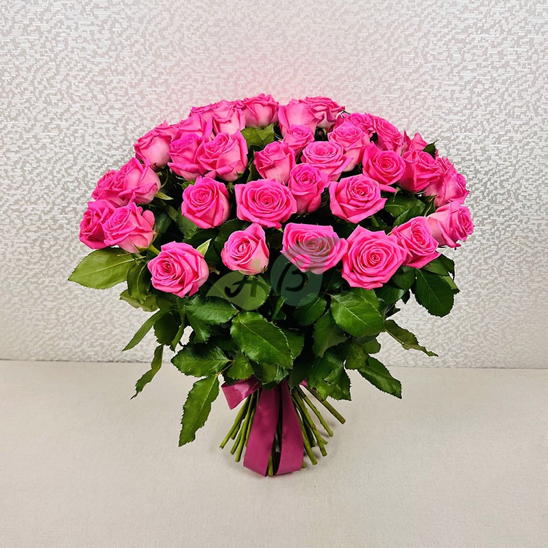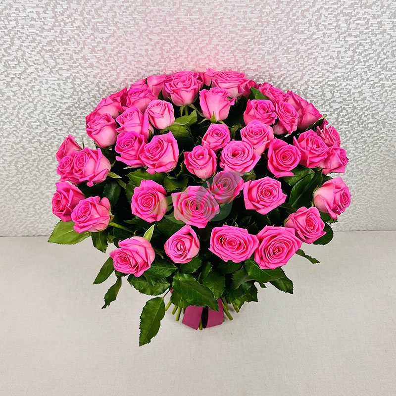 • Роза - 51 штука, цвет - розовый, длина стебля - 60 см;