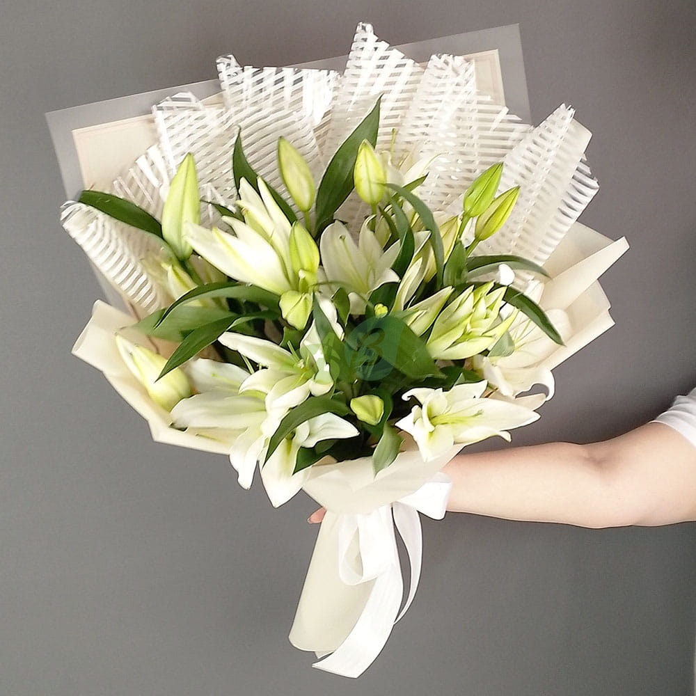 • Лилия - 7 веток, цвет - белый, длина стебля - 50 см;
